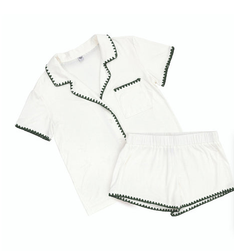 Bella Sleep + Spa Bamboo Whip Stitch Short Pj Set (Green)