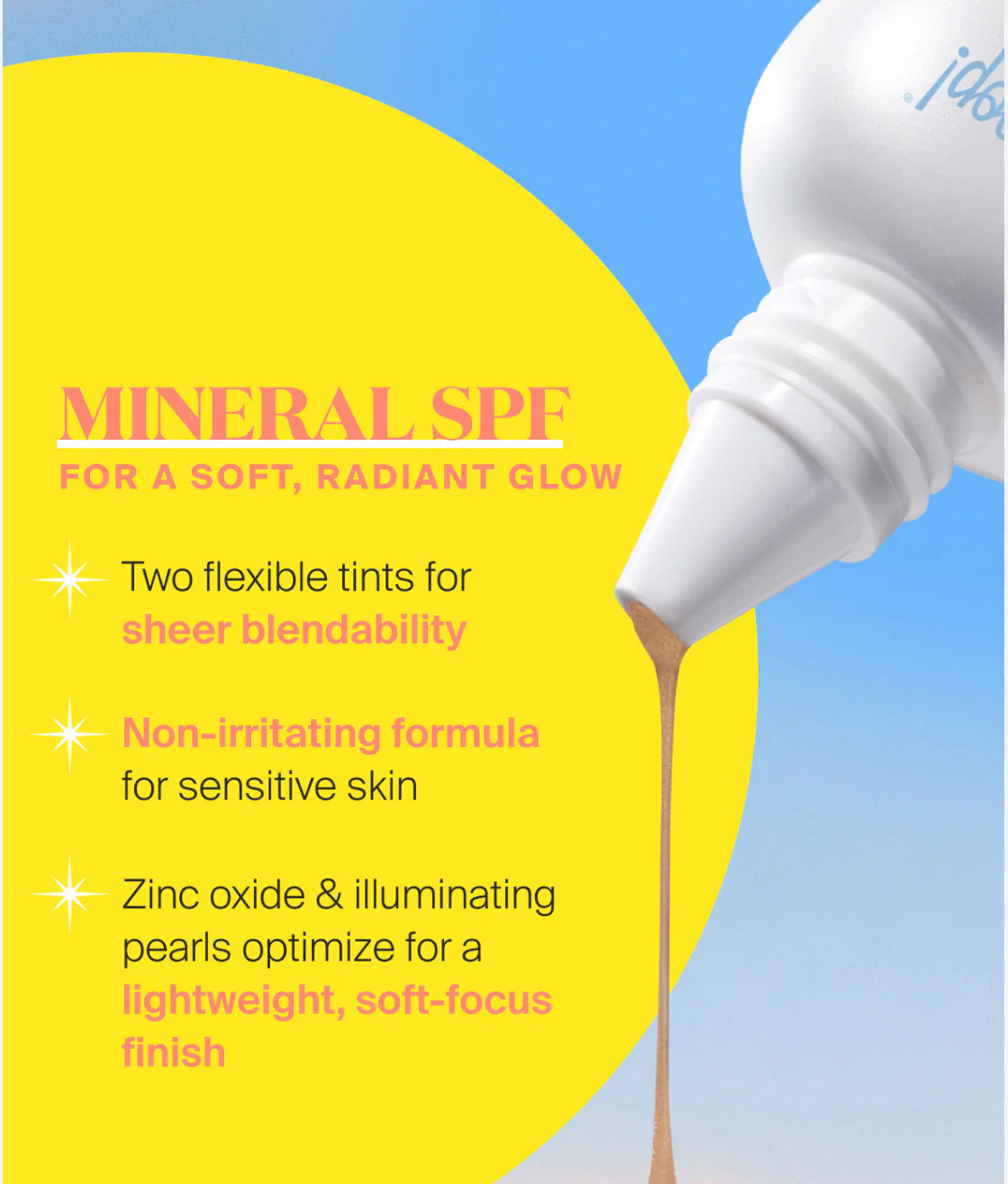 Soft glow drops that enhance natural radiance for visibly brighter, smoother, even skin¹, with tinted mineral sunscreen for all skin types (including sensitive!) and a blendable tint to minimize white cast.